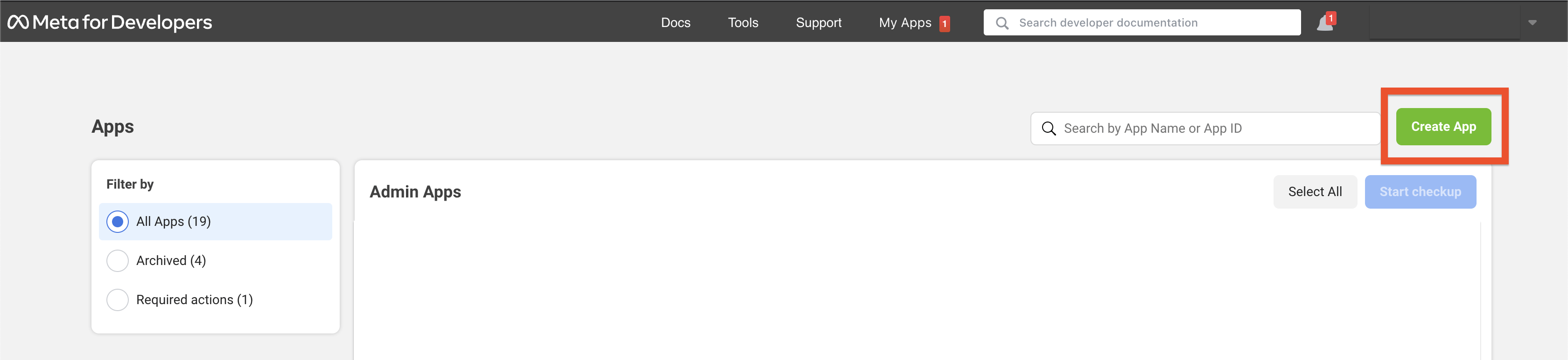 - Go to "My Apps" on the main page and click on "Create App".