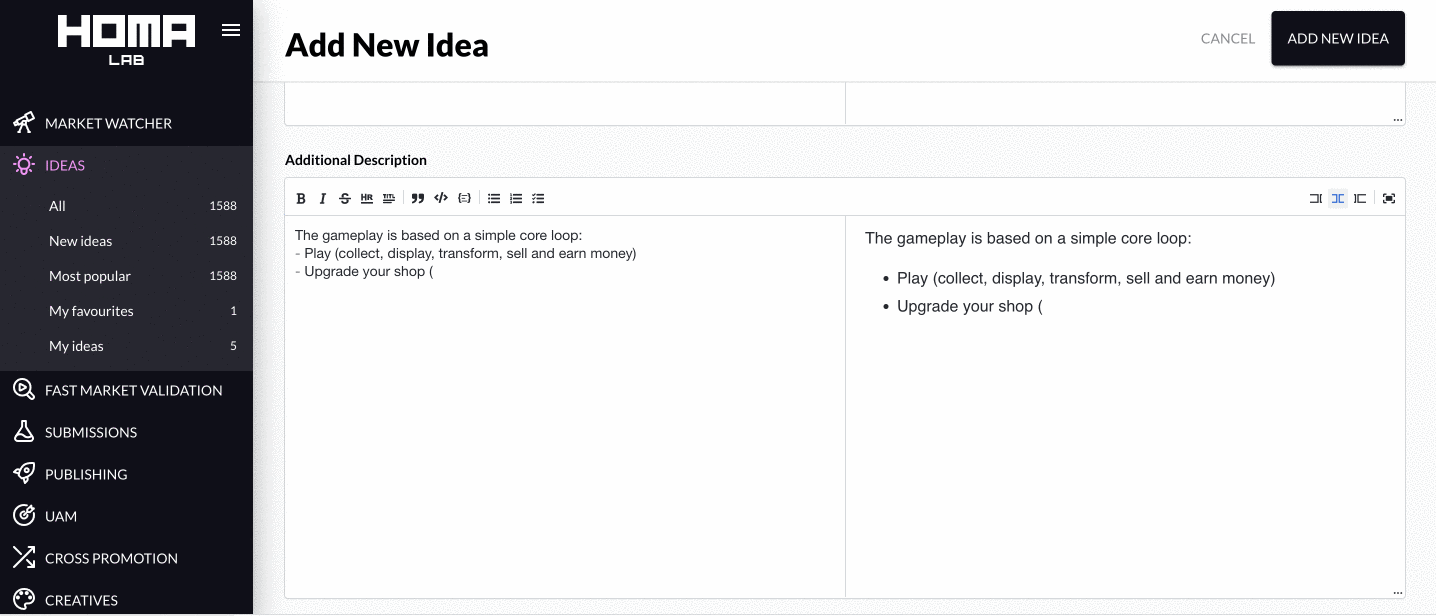 Describe in couple of sentences what is unique in your idea and what makes it stand out. Successful unique selling point will make your idea more attractive! Sell your idea!