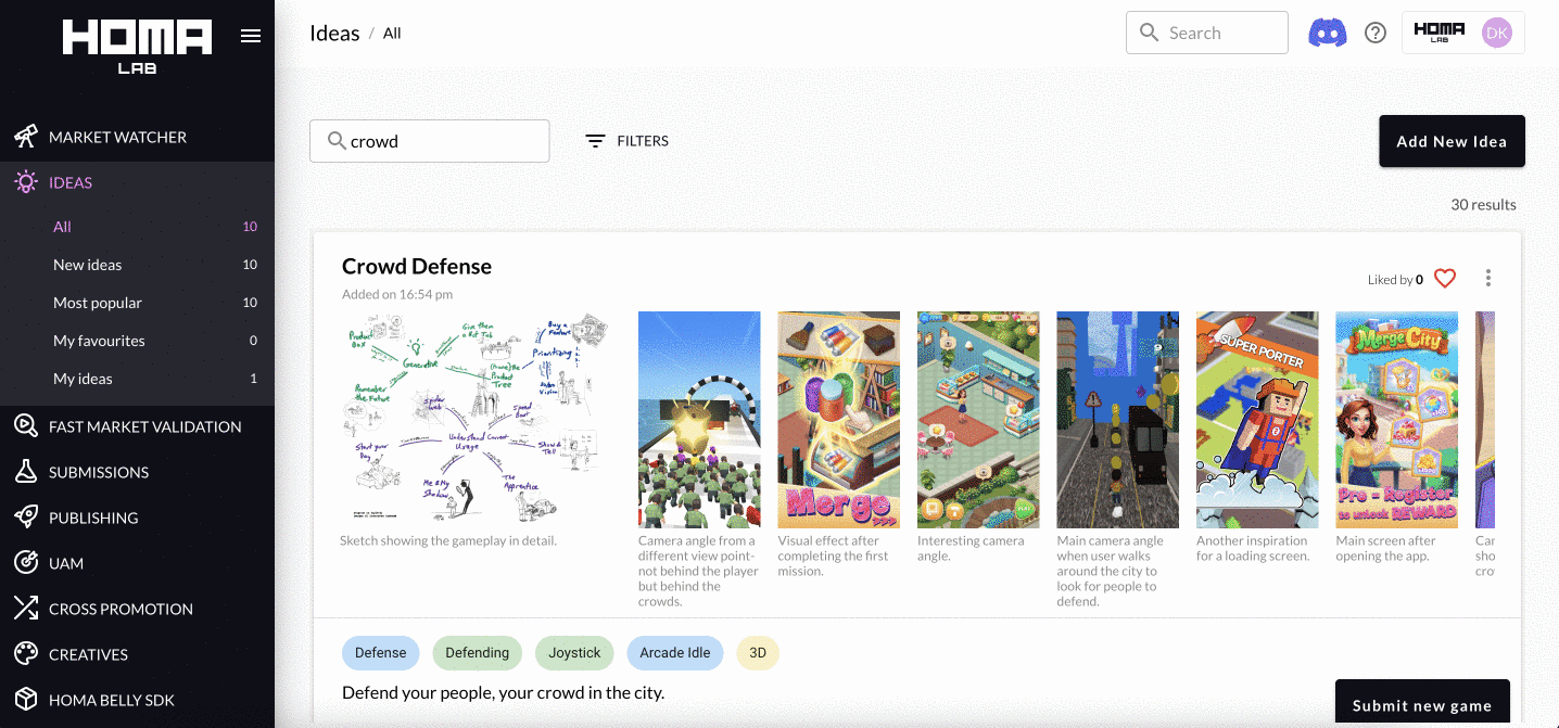 Les idées les plus populaires sont celles qui ont reçu le plus grand nombre de « j’aime » dans Homa Lab.
